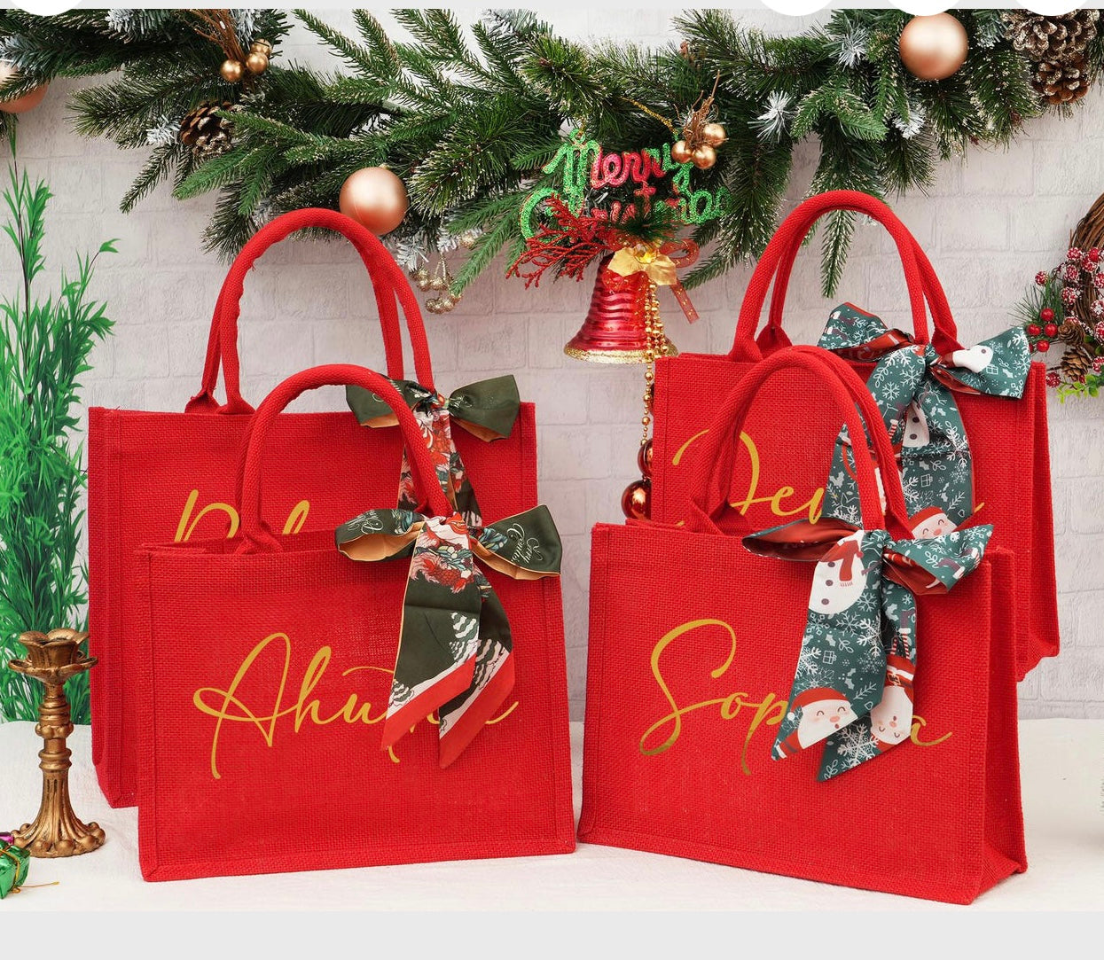Celebrate the Christmas Season with our elegant and eco-friendly Red Burlap Christmas Gift Bags. These reusable and durable gift bags bring a personalised touch to your Christmas celebrations with custom names beautifully written in festive gold script. Whether you're gifting large or small items, these bags add a luxurious and thoughtful touch to your holiday gift giving.